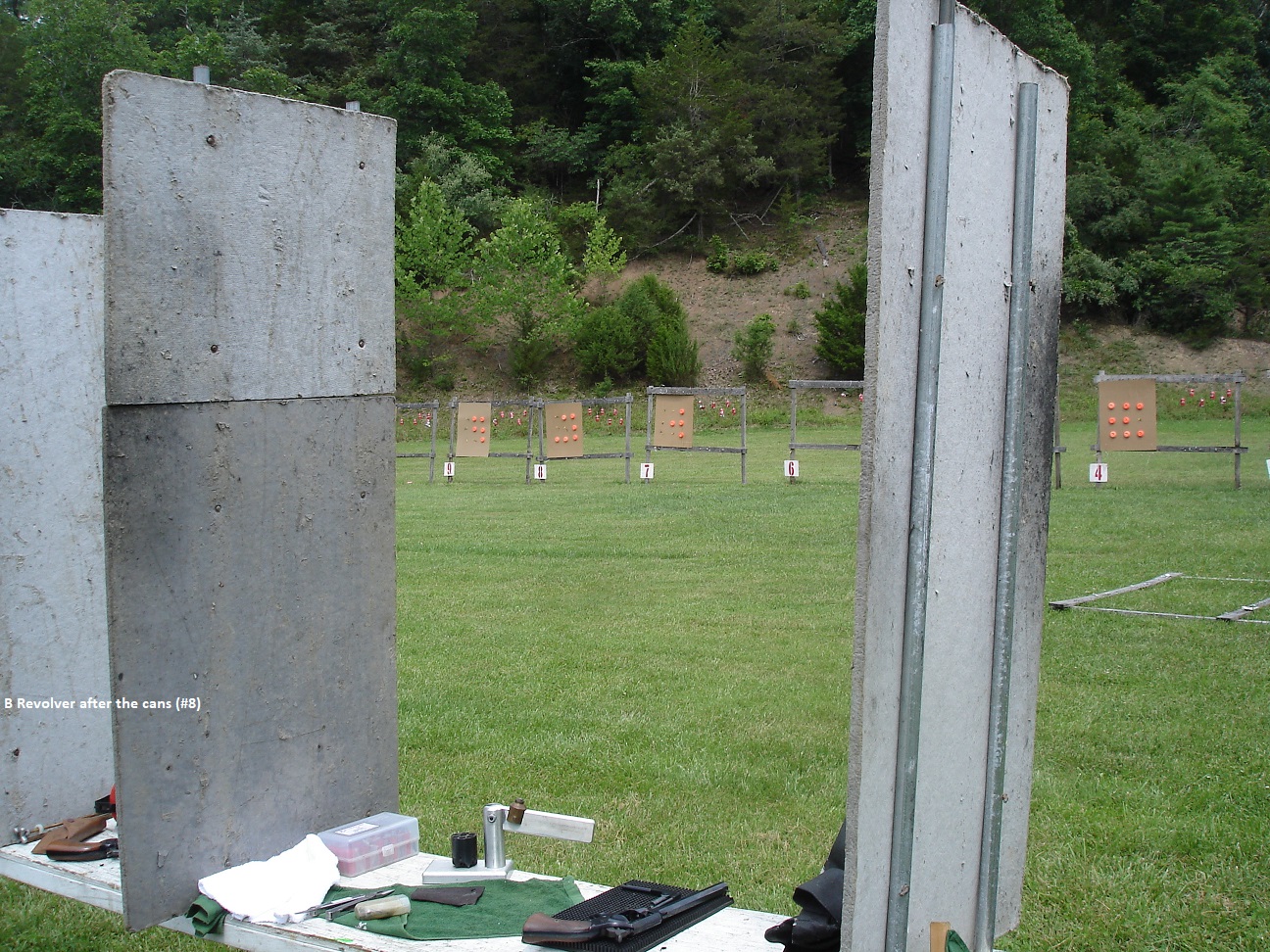 | Revolver Range, Pigeons and Cans setup |